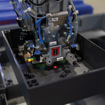 Ulrich Rotte hat für den Tür- und Torspezialisten Hörmann eine umfangreiche Anlage zur Montage von Torsteuerungen entwickelt. Die Anlage ist auf eine Parallelfertigung ausgelegt und besteht aus manuellen sowie vollautomatischen Prozessen. Um die Kommissionierung sollen sich zwei FANUC Roboter kümmern.